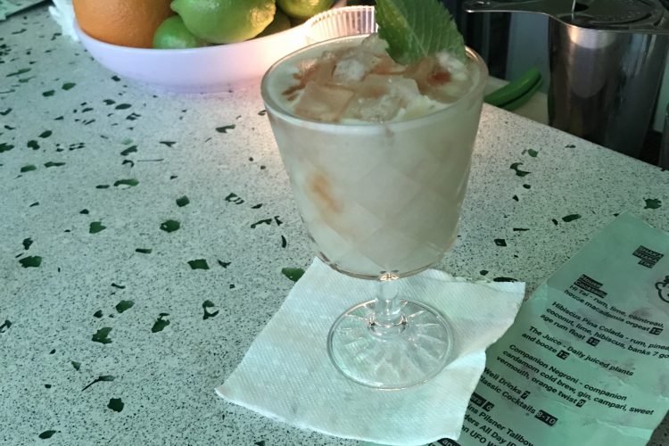 Enjoy your selection in a cheerful tree-house vibe room that is colorful and bright–you’ll be surrounded by oxygen-producing plants suspended from the ceiling in macrame hangers, a soothing atmospheric playlist, and a collection of visitors stopping by for a specialty beverage or bite to eat. Garrett led the design aesthetic after they chose the recycled-glass and concrete service station cum bartop. As the day progresses, Garrett takes control of the bar–Shaka Shaka Tiki, whipping up some adult libations to satisfy your evening palette. Relatively new to the mixologist world, Garrett has assembled some delightful quaffs that can accompany Companion foods or take the edge off your earlier-in-the-morning work-out woes. “I hope that we’re best serving the community here by offering healthy and homemade food options during the day, along with freshly roasted coffee and friendly vibes,” Kai adds, “We both believe strongly in the power of a cafe/bar to provide a gathering place where conversations between neighbors can take place and you can feel at home and comfortable enough to engage with a stranger.” Check them out before your next Barclays event as they are around the corner from the lesser-known Dean Street Entrance at Barclays Center–you’ll feel like a true North Flatbush Avenue insider.